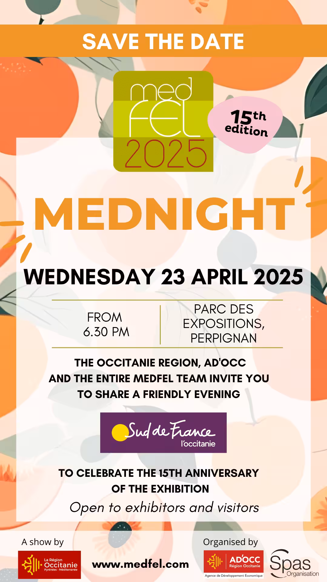 The Occitanie region, AD’OCC and the entire medFEL team invite you to share a festive and convivial evening on Wednesday 23rd April from 6.30pm.